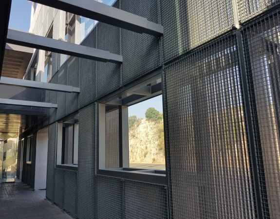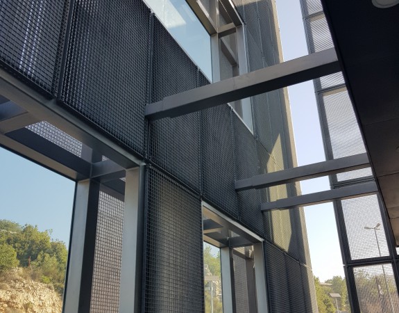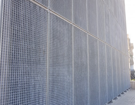 Supply and installation of decorative steel facades.(30 tons) Facade envelope made out of galvanized gratings . Designed by Architect Bernard Khoury