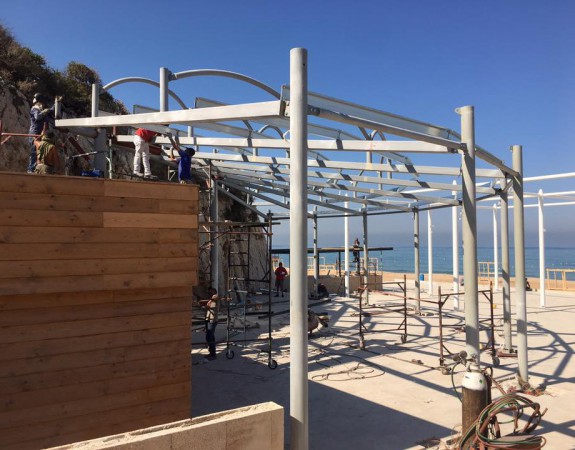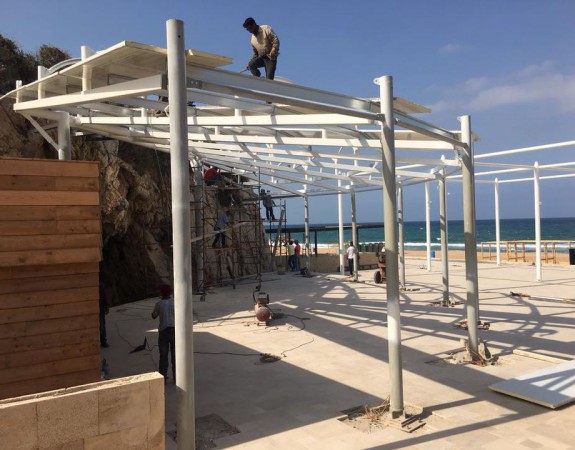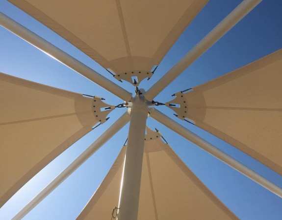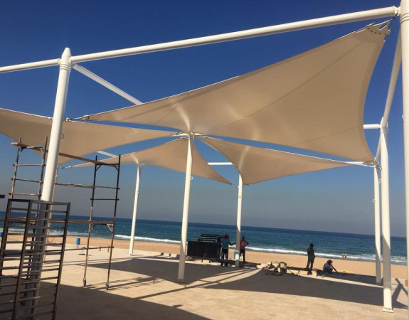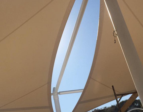 Supply and installation of steel tents with tension fabrics .