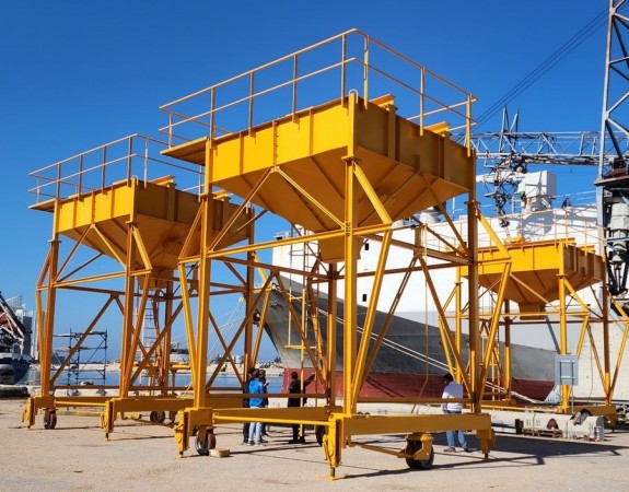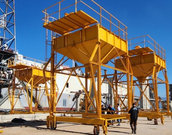 Supply and installation of three steel hoppers to unload