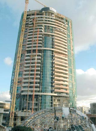 Supply and erection of horizontal curved steel pipes with tension rods for a glass façade