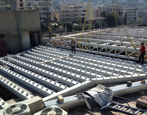 Supply and installation of steel decks with corrugated sheets for three floors (220 tons).